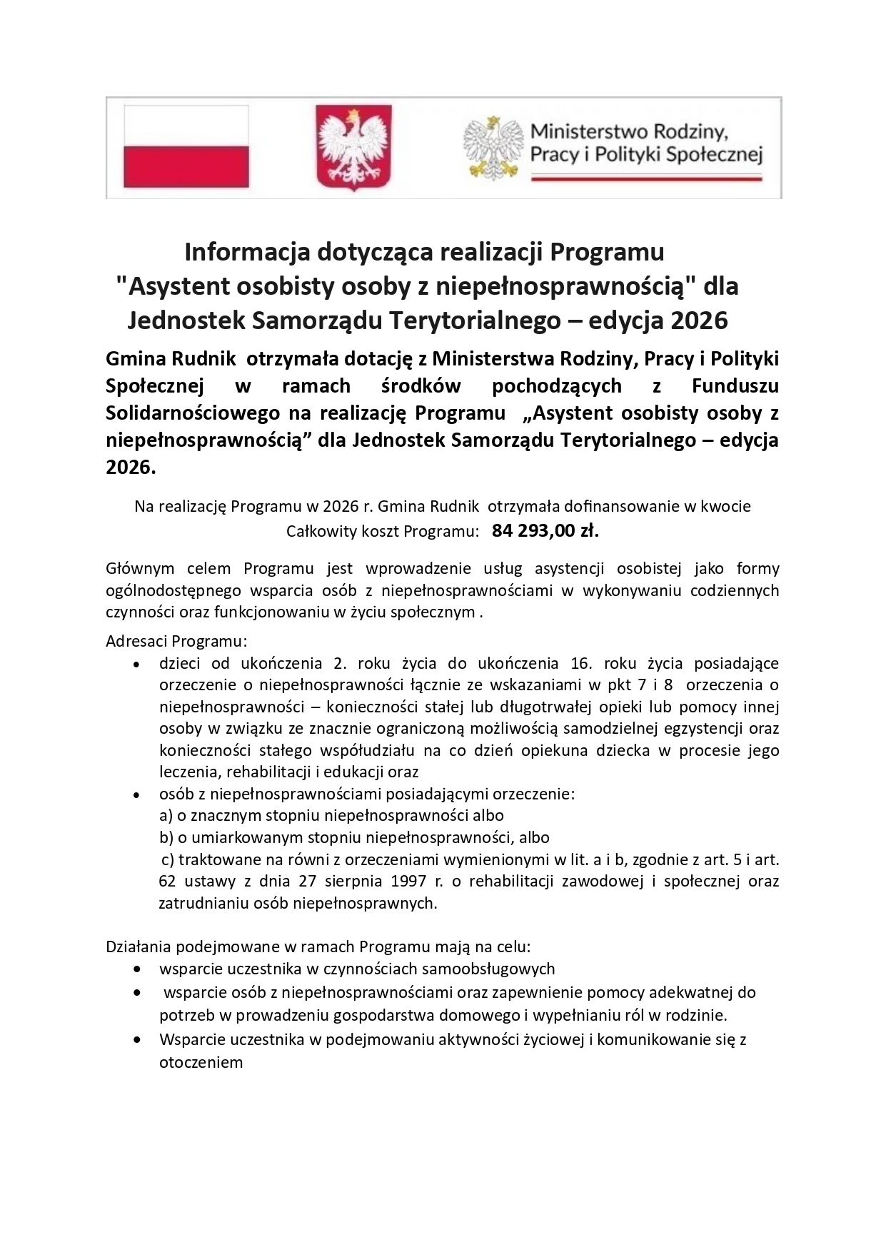 Program „Asystent osobisty osoby z niepełnosprawnością” dla Jednostek Samorządu Terytorialnego – edycja 2026
