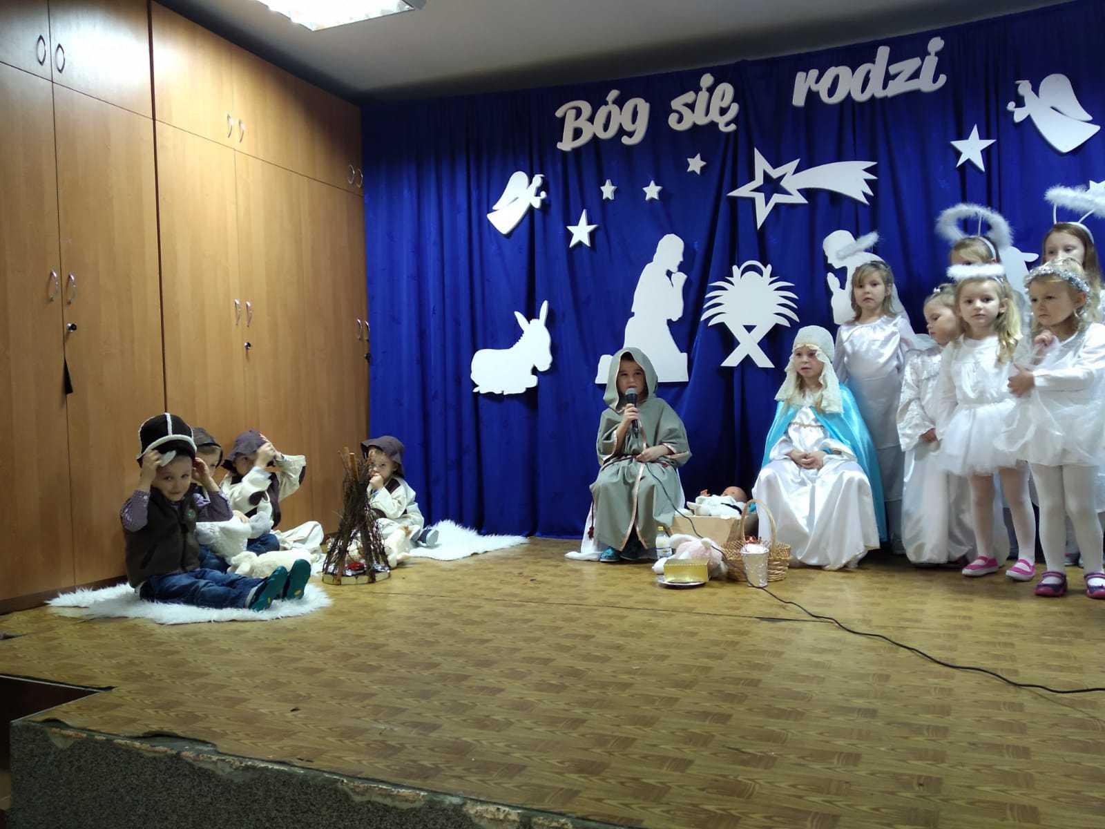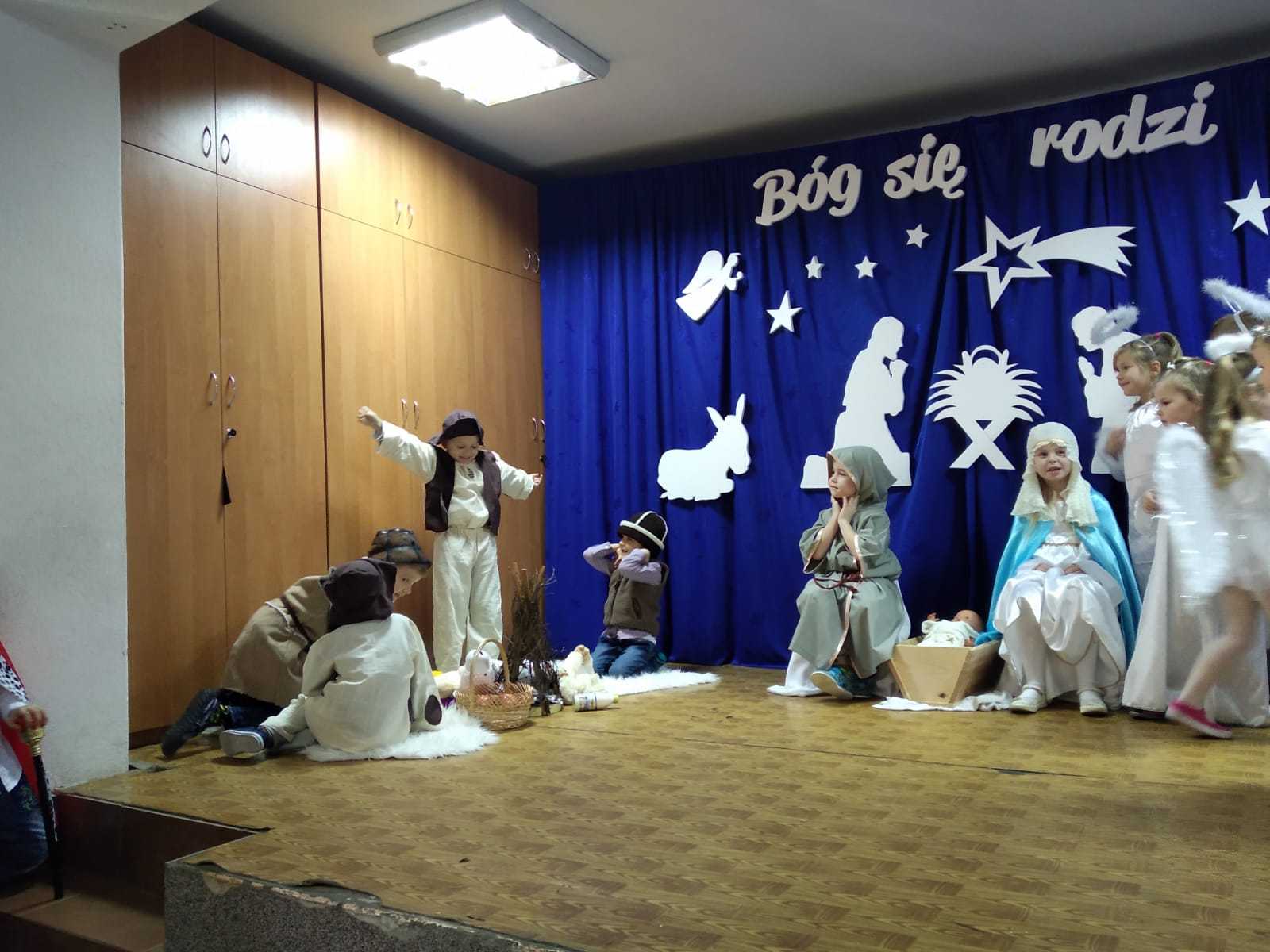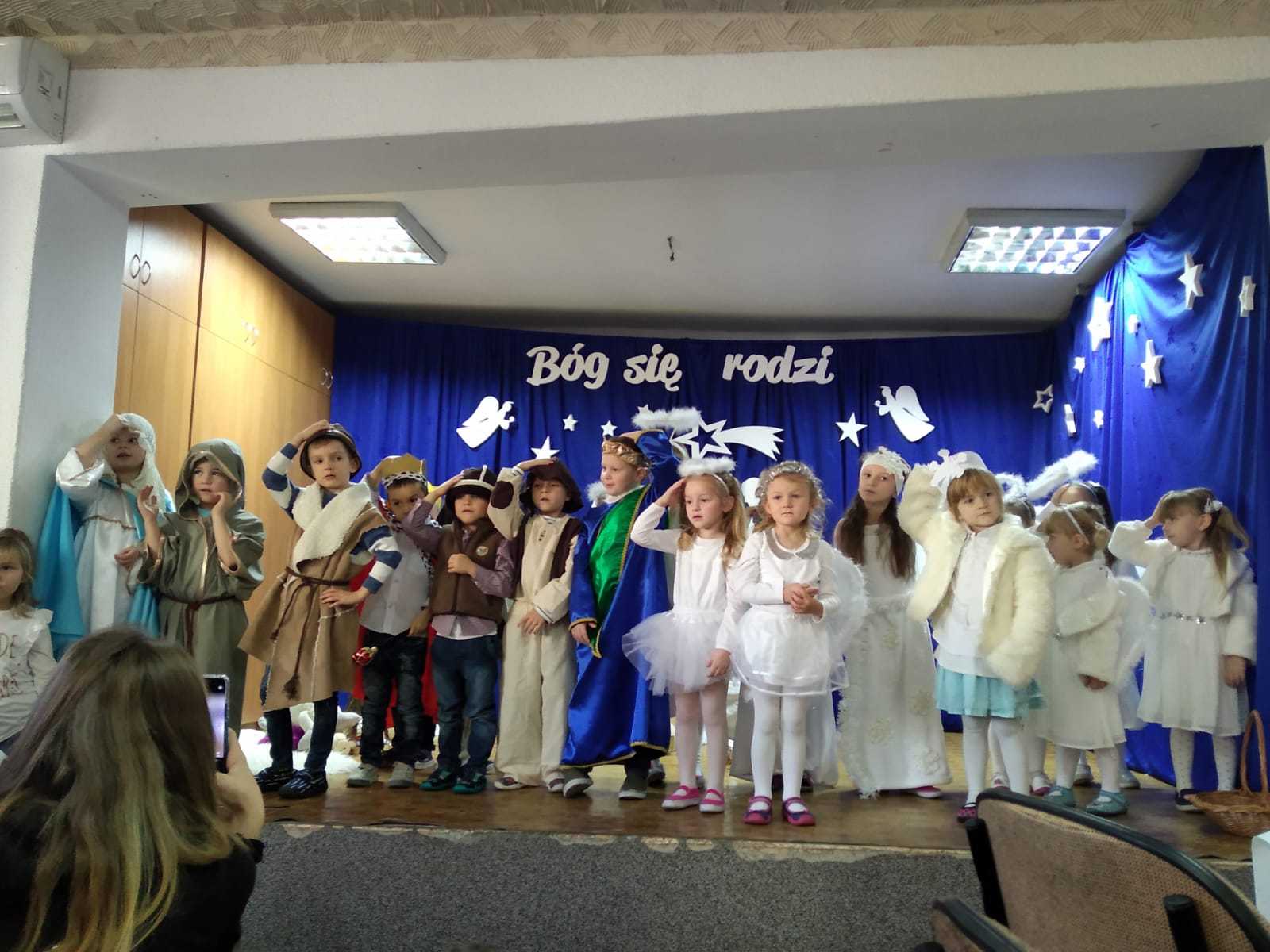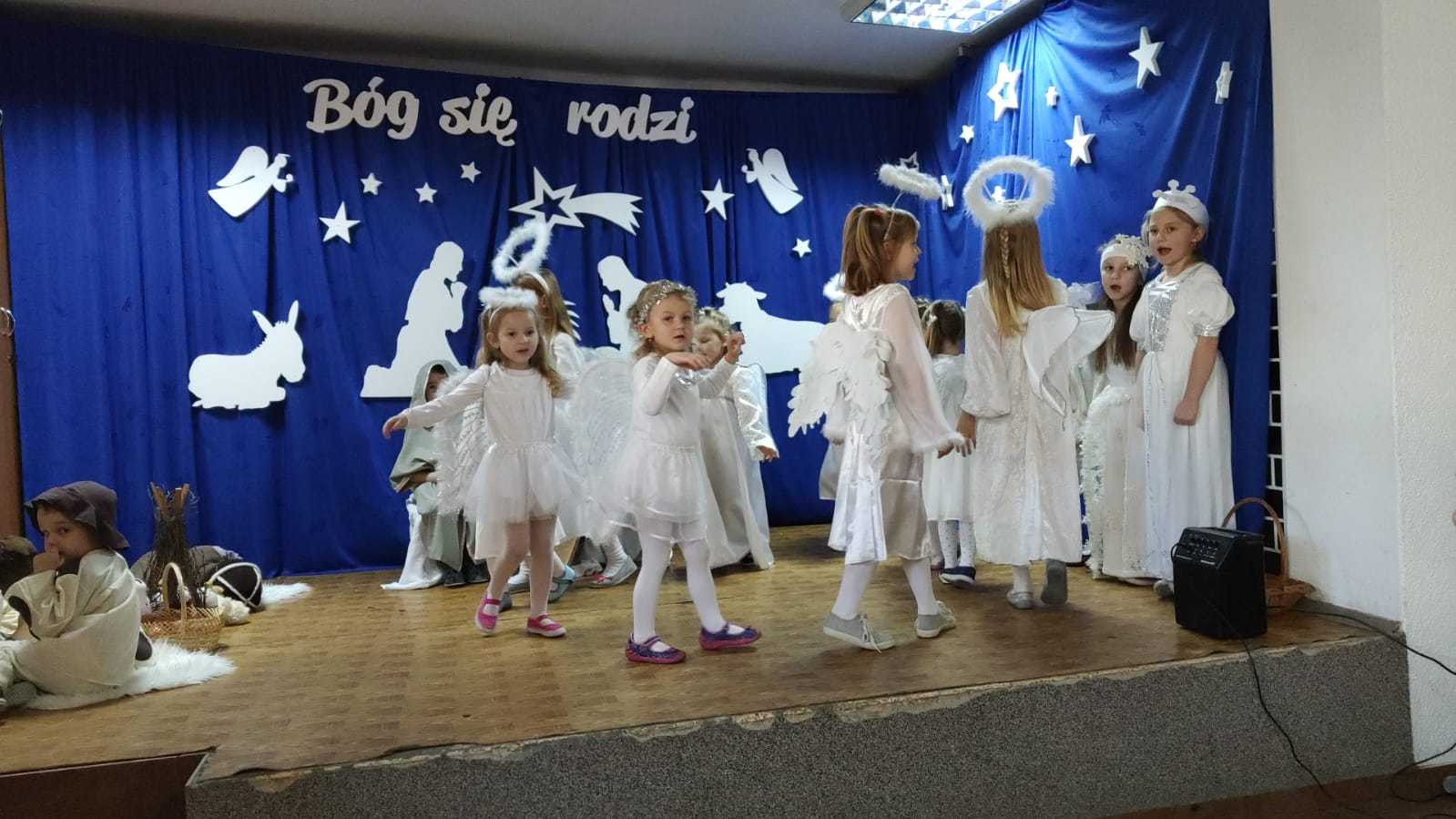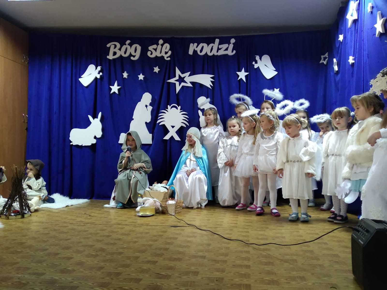 Dnia 20 grudnia 2019 roku przedszkolaki przedstawiły rodzicom Jasełka oraz rozśmieszyły ich występami po śląsku. Aktorzy bardzo profesjonalnie zaprezentowali historię narodzin małego Jezuska, zaśpiewali wiele kolęd zarówno po polsku, niemiecku , jak i w języku angielskim. Na koniec dwie pary rozbawiły widownię przedstawiając 2 scenki po śląsku. Dzieci w ten sposób poznają gwarę śląską i tradycje regionalne. W nagrodę za wspaniałe występy, przedszkolaki odwiedził Święty Mikołaj i obdarował prezentami. Po części oficjalnej dzieci wraz z rodzicami i rodzeństwem zasiedli do stołu, aby wspólnie cieszyć się świąteczną atmosferą i przekąsić przygotowane przez mamy smakołyki.