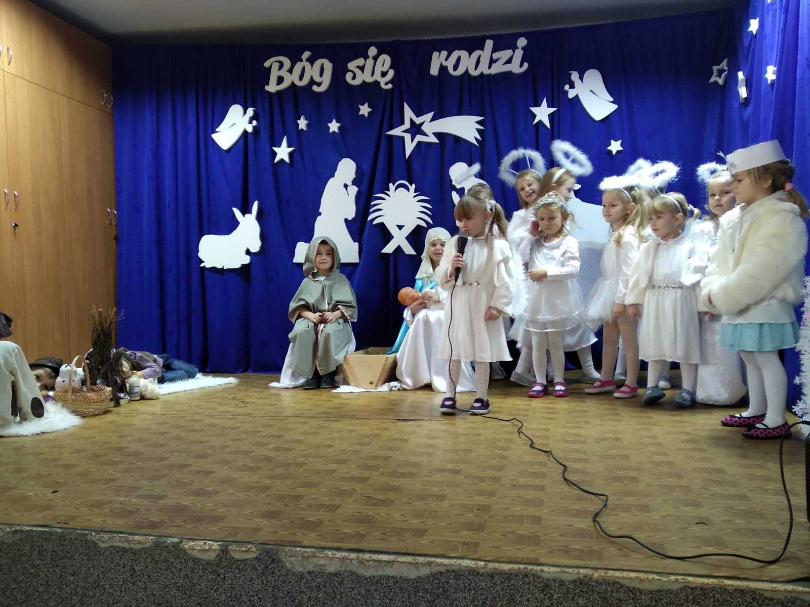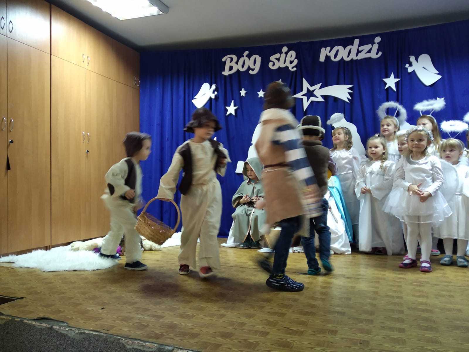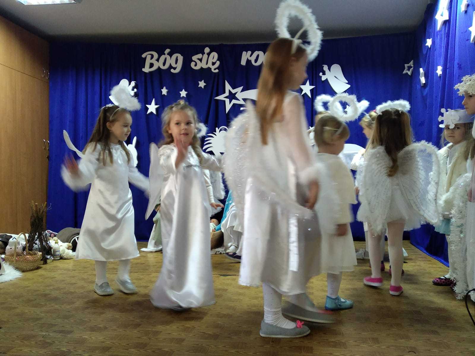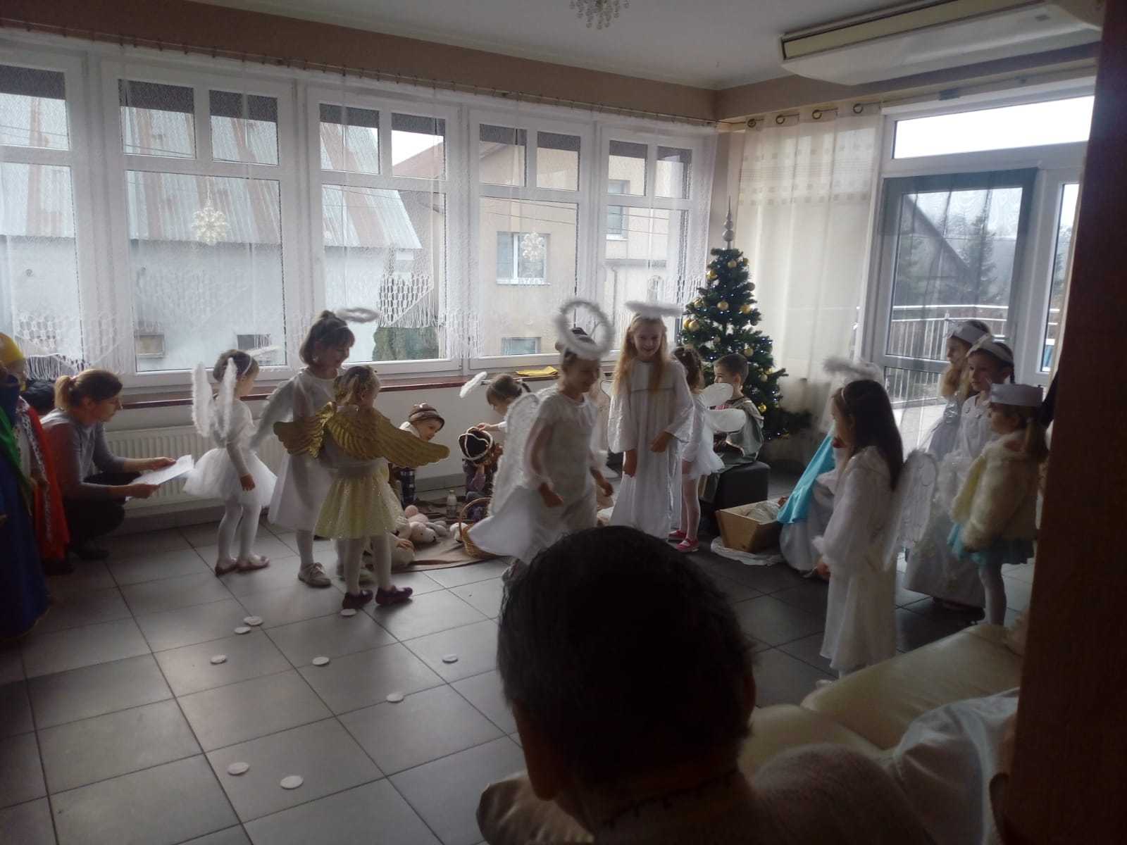 Dnia 20 grudnia 2019 roku przedszkolaki przedstawiły rodzicom Jasełka oraz rozśmieszyły ich występami po śląsku. Aktorzy bardzo profesjonalnie zaprezentowali historię narodzin małego Jezuska, zaśpiewali wiele kolęd zarówno po polsku, niemiecku , jak i w języku angielskim. Na koniec dwie pary rozbawiły widownię przedstawiając 2 scenki po śląsku. Dzieci w ten sposób poznają gwarę śląską i tradycje regionalne. W nagrodę za wspaniałe występy, przedszkolaki odwiedził Święty Mikołaj i obdarował prezentami. Po części oficjalnej dzieci wraz z rodzicami i rodzeństwem zasiedli do stołu, aby wspólnie cieszyć się świąteczną atmosferą i przekąsić przygotowane przez mamy smakołyki.