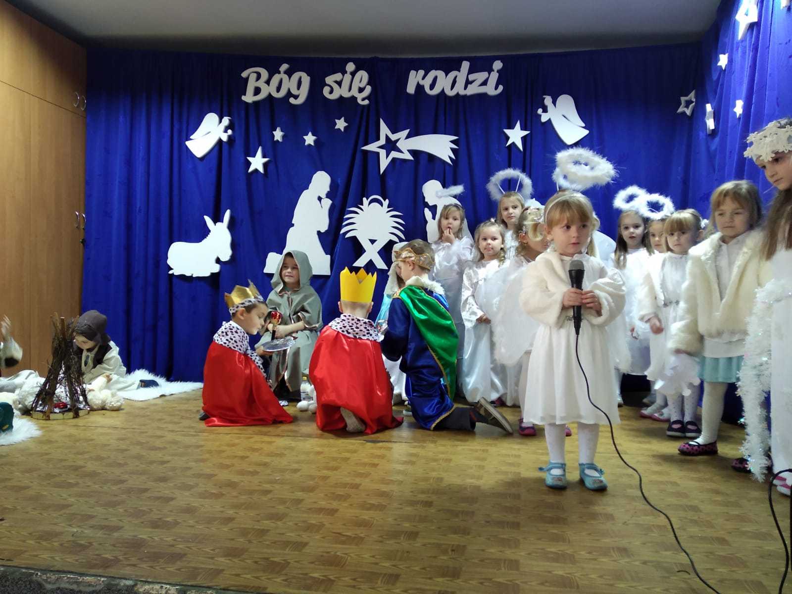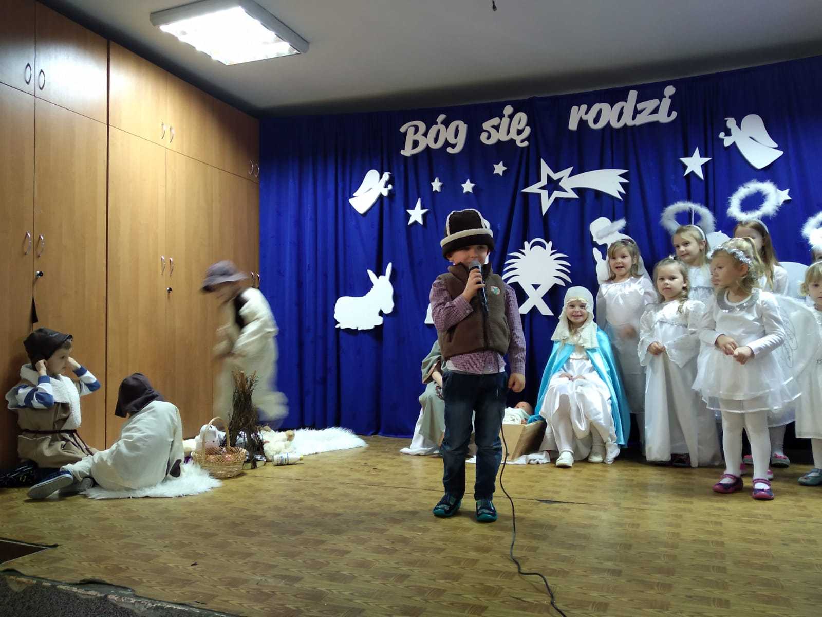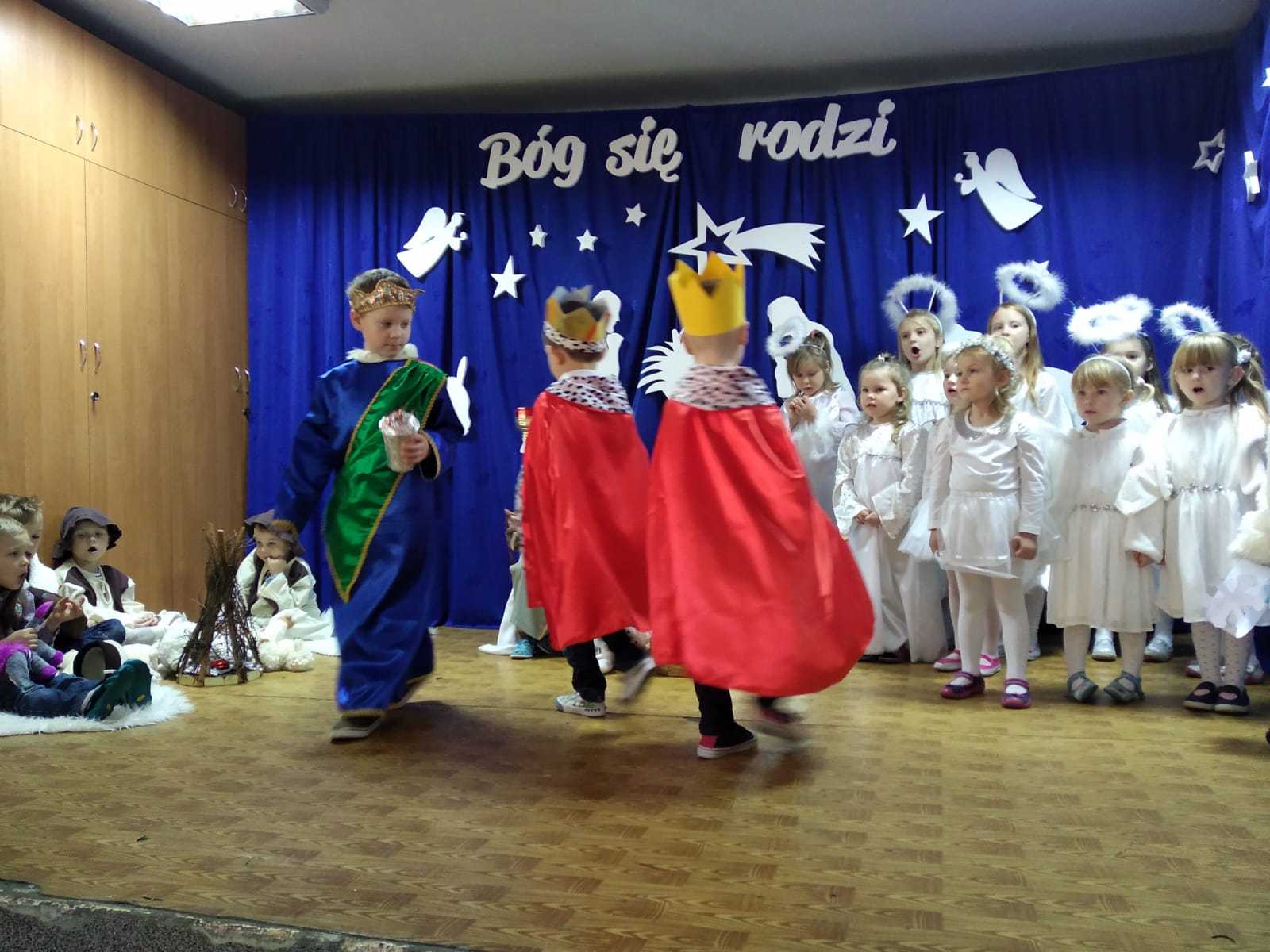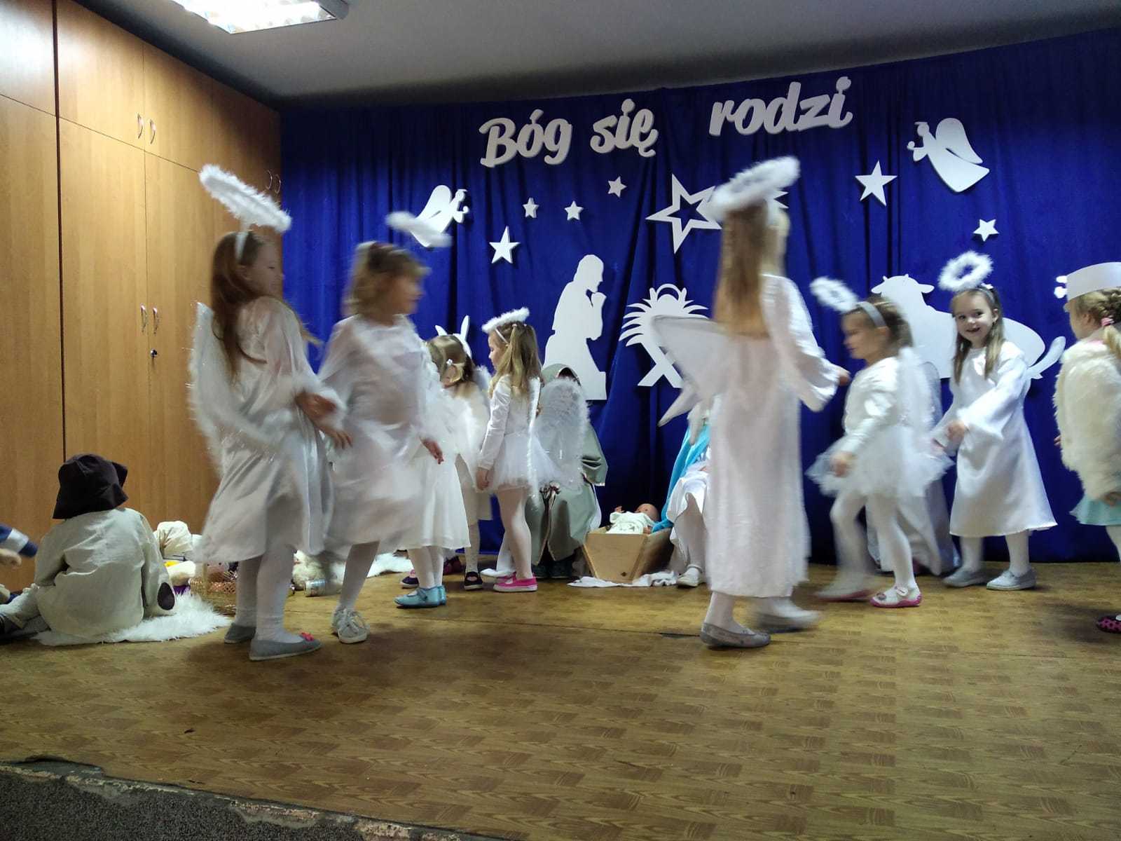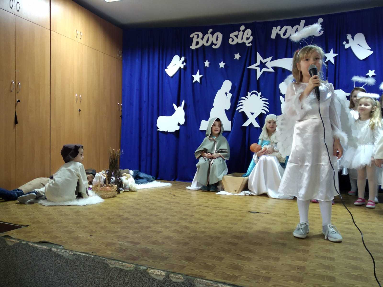 Dnia 20 grudnia 2019 roku przedszkolaki przedstawiły rodzicom Jasełka oraz rozśmieszyły ich występami po śląsku. Aktorzy bardzo profesjonalnie zaprezentowali historię narodzin małego Jezuska, zaśpiewali wiele kolęd zarówno po polsku, niemiecku , jak i w języku angielskim. Na koniec dwie pary rozbawiły widownię przedstawiając 2 scenki po śląsku. Dzieci w ten sposób poznają gwarę śląską i tradycje regionalne. W nagrodę za wspaniałe występy, przedszkolaki odwiedził Święty Mikołaj i obdarował prezentami. Po części oficjalnej dzieci wraz z rodzicami i rodzeństwem zasiedli do stołu, aby wspólnie cieszyć się świąteczną atmosferą i przekąsić przygotowane przez mamy smakołyki.