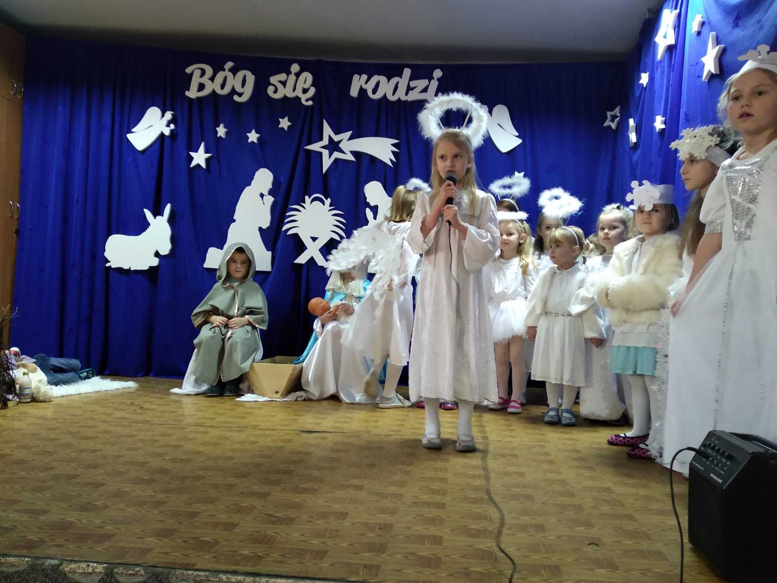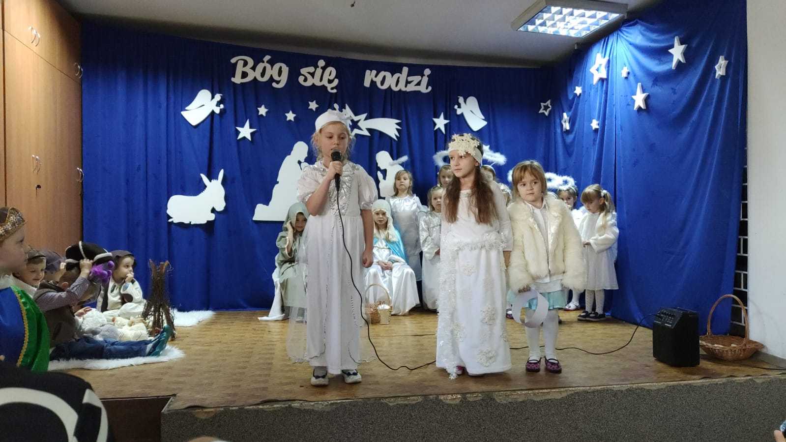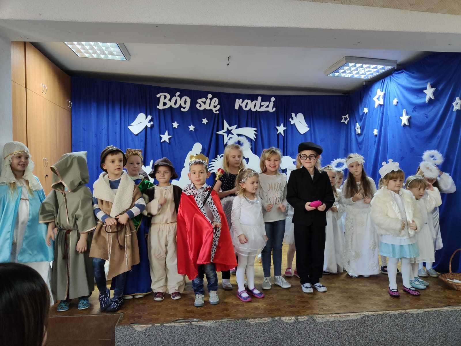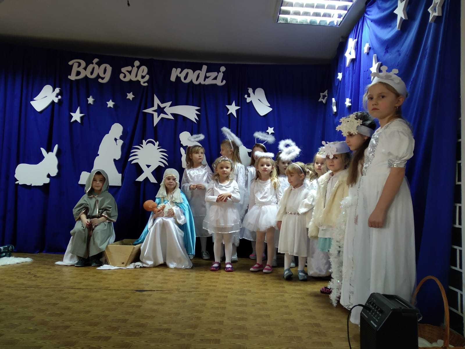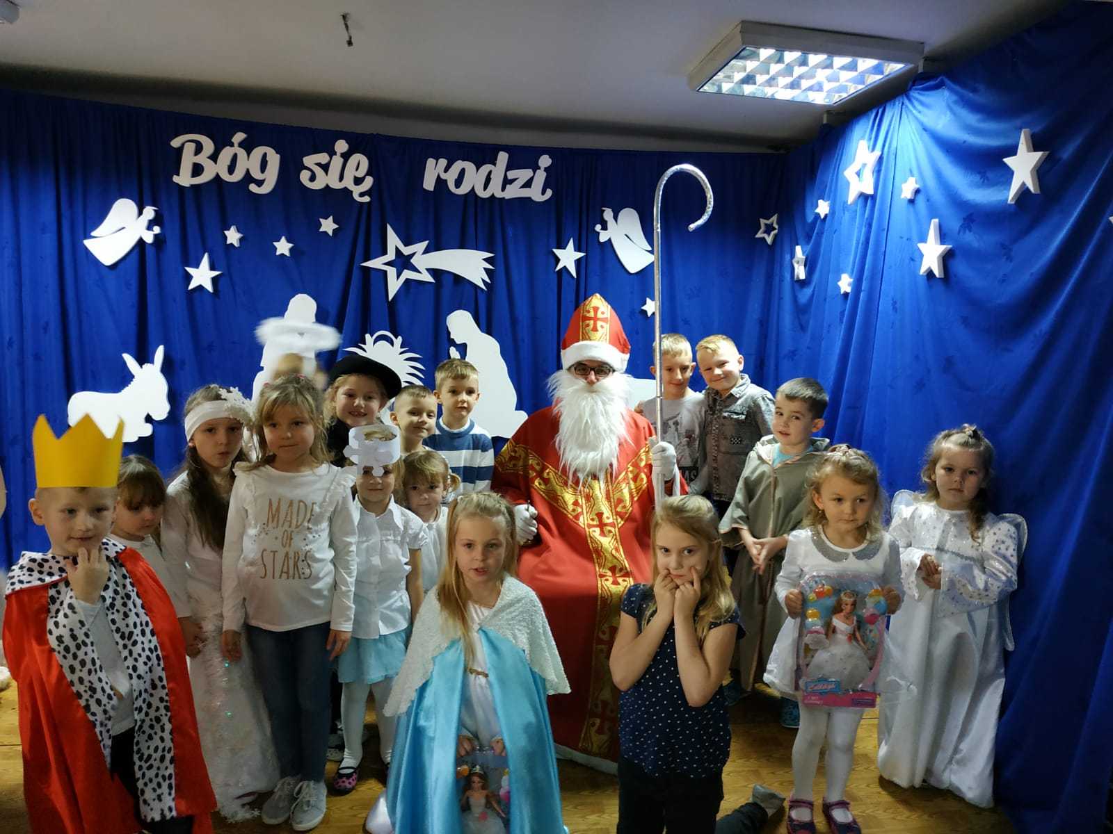 Dnia 20 grudnia 2019 roku przedszkolaki przedstawiły rodzicom Jasełka oraz rozśmieszyły ich występami po śląsku. Aktorzy bardzo profesjonalnie zaprezentowali historię narodzin małego Jezuska, zaśpiewali wiele kolęd zarówno po polsku, niemiecku , jak i w języku angielskim. Na koniec dwie pary rozbawiły widownię przedstawiając 2 scenki po śląsku. Dzieci w ten sposób poznają gwarę śląską i tradycje regionalne. W nagrodę za wspaniałe występy, przedszkolaki odwiedził Święty Mikołaj i obdarował prezentami. Po części oficjalnej dzieci wraz z rodzicami i rodzeństwem zasiedli do stołu, aby wspólnie cieszyć się świąteczną atmosferą i przekąsić przygotowane przez mamy smakołyki.