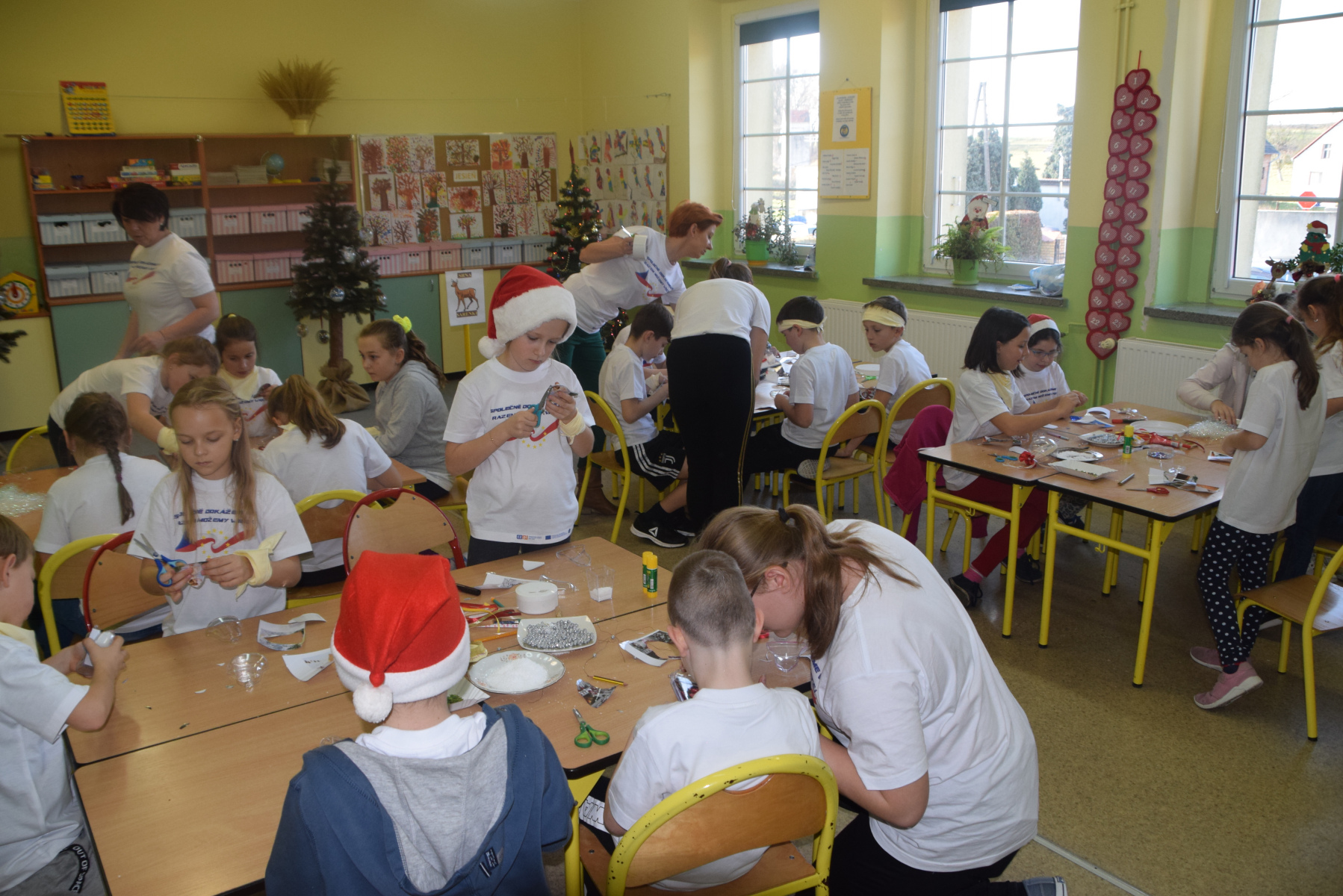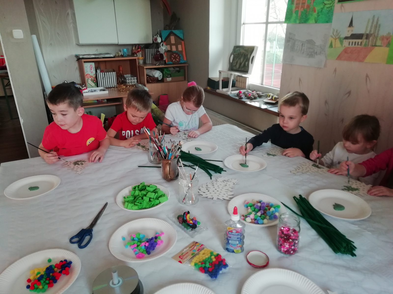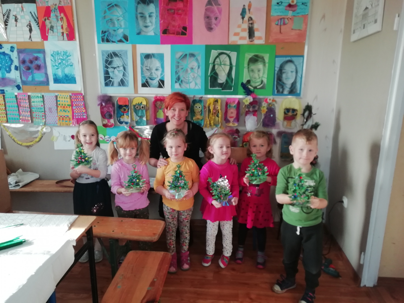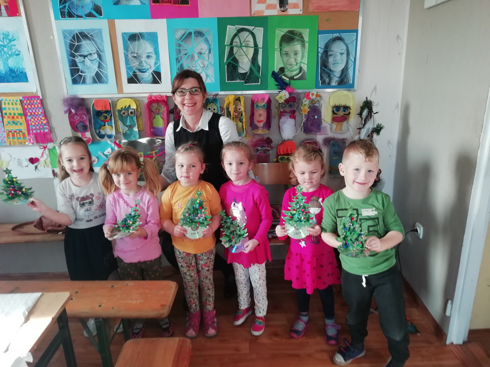 Dnia 16 grudnia 2019 roku, po raz kolejny w tak krótkim czasie, przedszkolaki z Grzegorzowic spacerowały do szkoły. Tym razem dzieci zostały zaproszone przez panie: Edytę Reichel oraz Danielę Płoszczycę. Pani Edyta przygotowała dla przedszkolaków warsztaty plastyczne, podczas których dzieci wykonywały świąteczne choinki, a pani Daniela przeprowadziła wiele ciekawych gier i zabaw na sali gimnastycznej. Dla przedszkolaków to była niesamowita przygoda, za którą serdecznie dziękujemy.