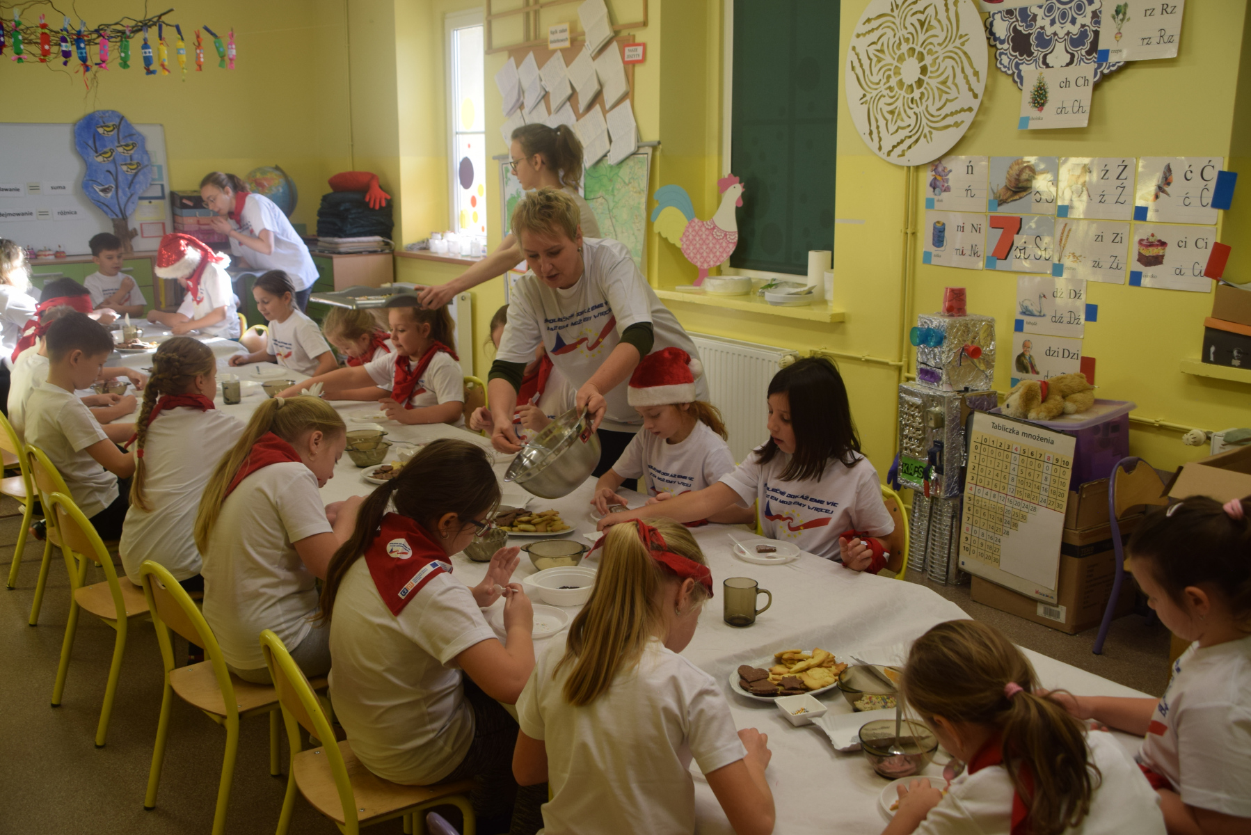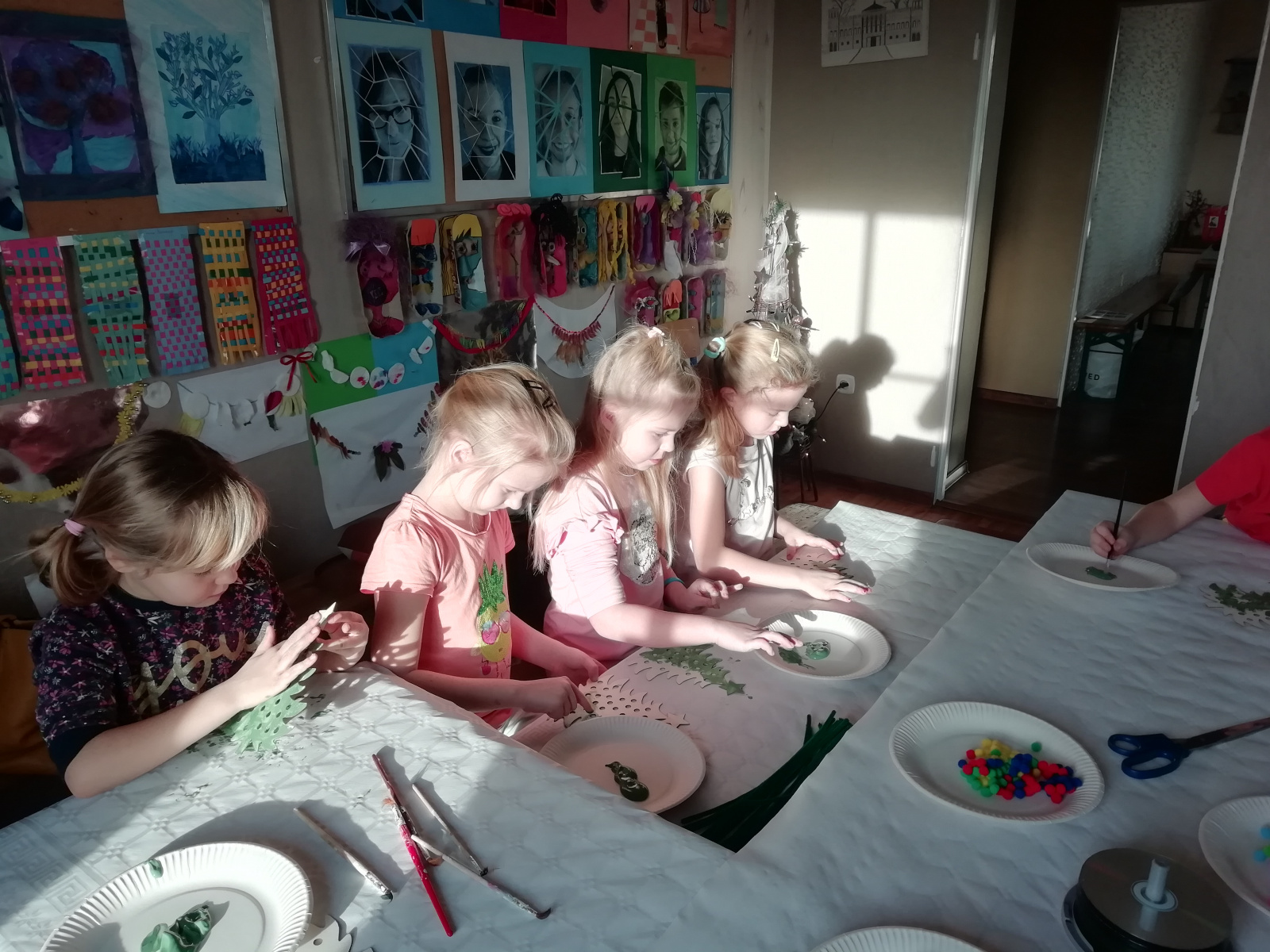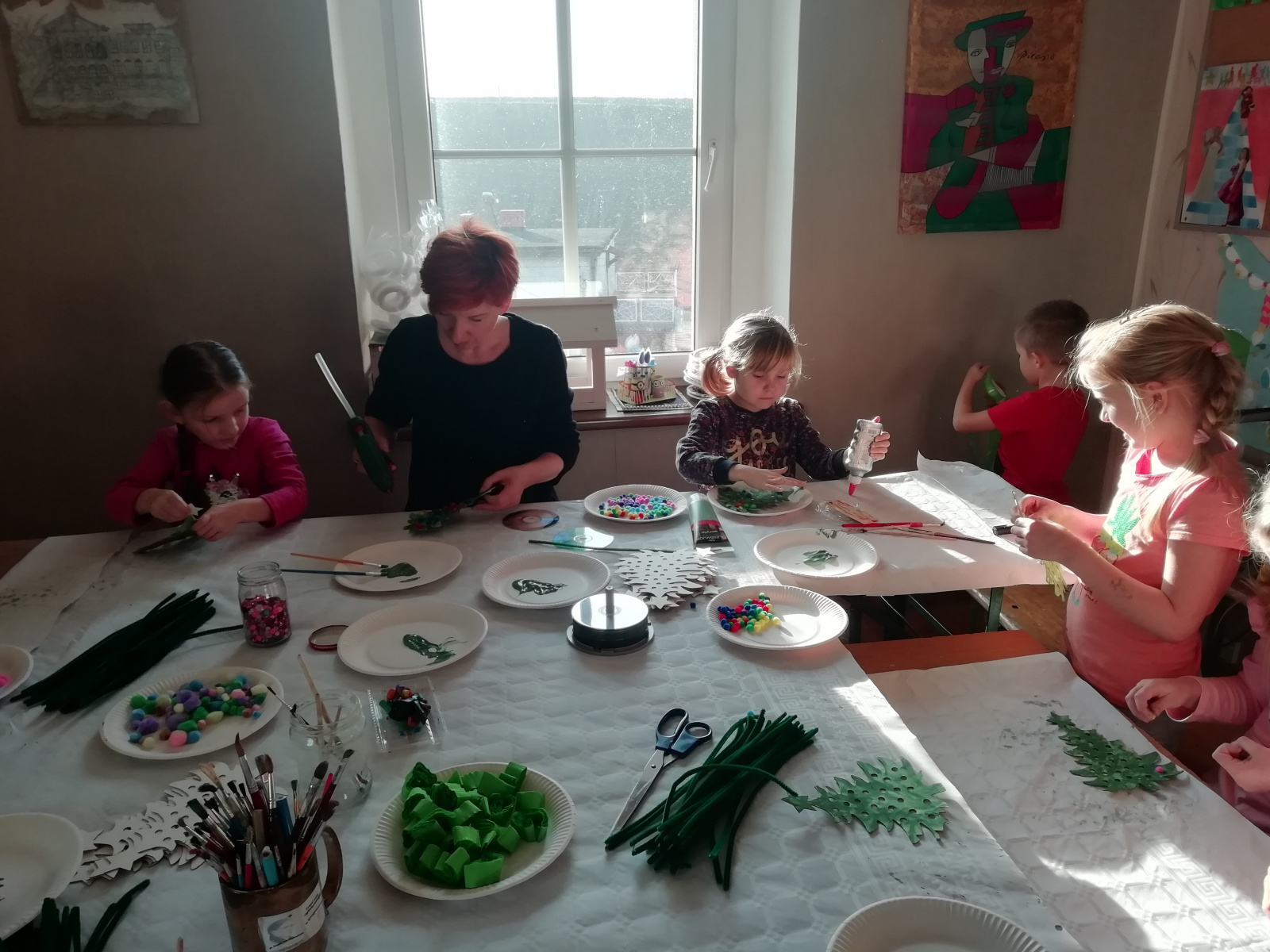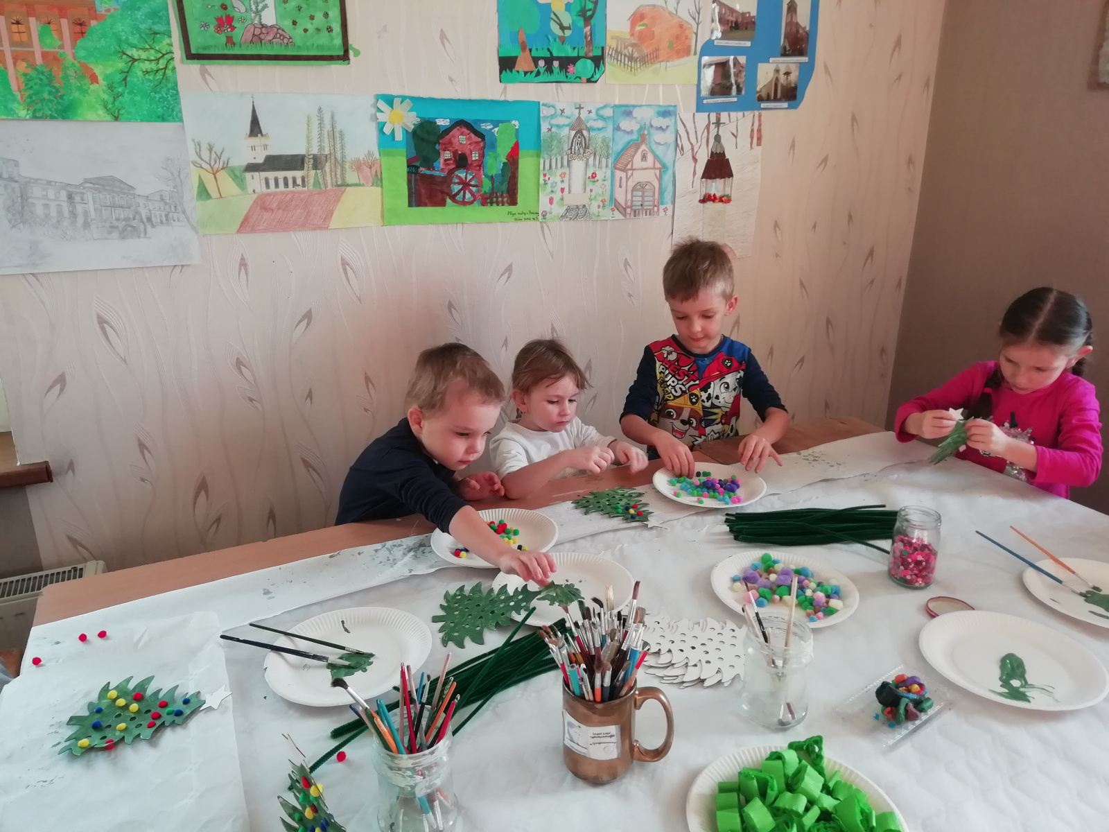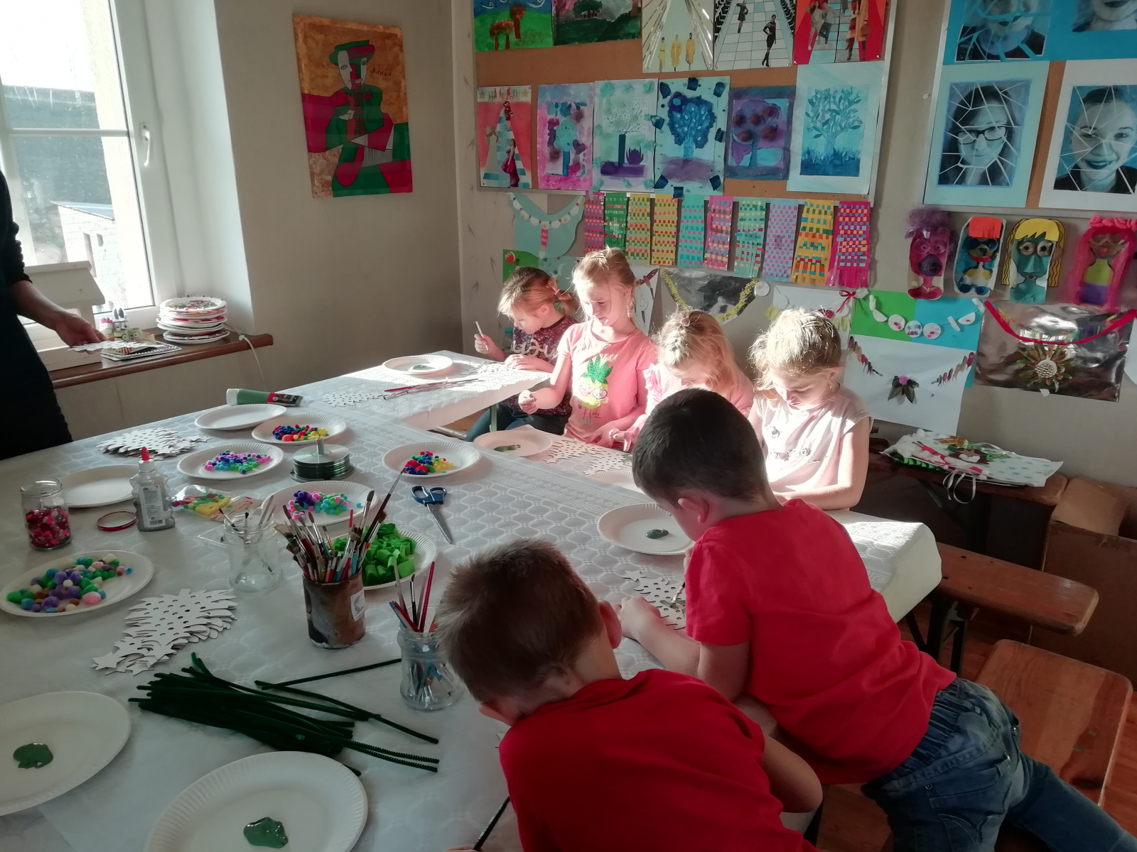 Dnia 16 grudnia 2019 roku, po raz kolejny w tak krótkim czasie, przedszkolaki z Grzegorzowic spacerowały do szkoły. Tym razem dzieci zostały zaproszone przez panie: Edytę Reichel oraz Danielę Płoszczycę. Pani Edyta przygotowała dla przedszkolaków warsztaty plastyczne, podczas których dzieci wykonywały świąteczne choinki, a pani Daniela przeprowadziła wiele ciekawych gier i zabaw na sali gimnastycznej. Dla przedszkolaków to była niesamowita przygoda, za którą serdecznie dziękujemy.