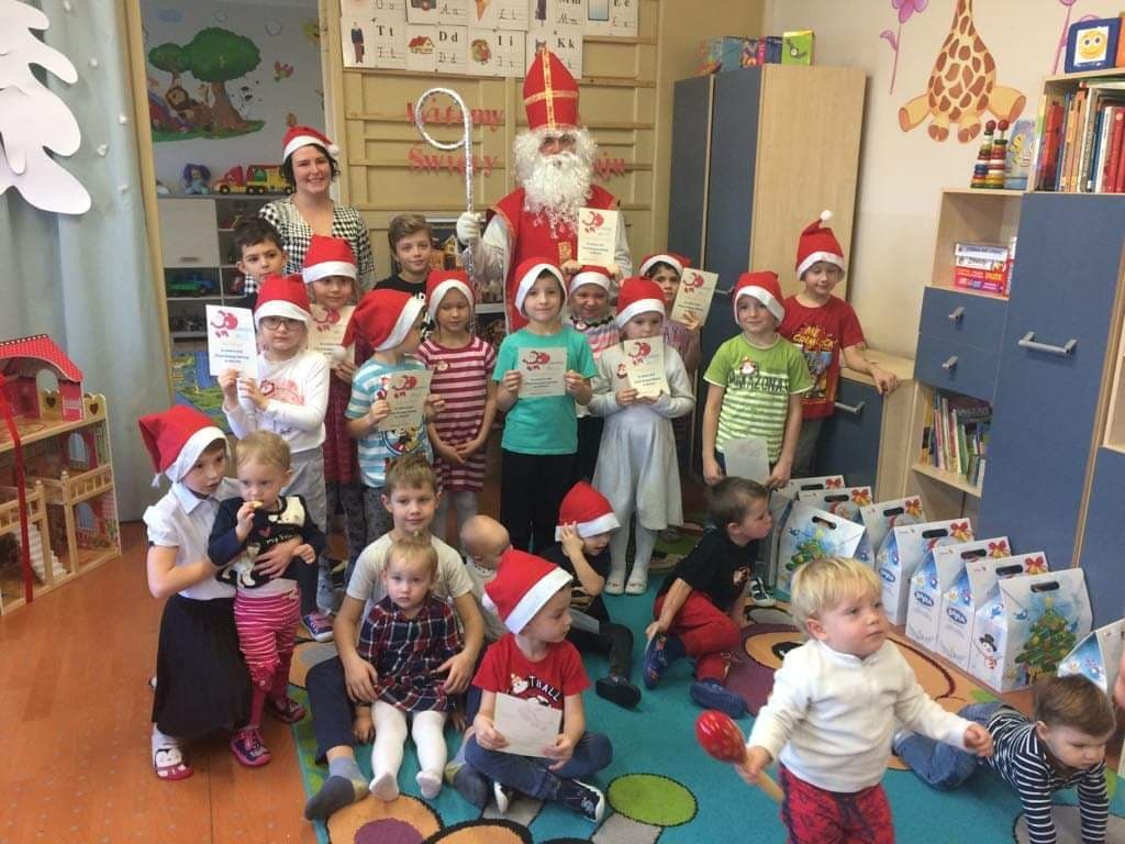 6 grudnia do naszego przedszkola przybył długo oczekiwany gość- Święty Mikołaj. Dzieci przywitały go z radością wierszykami, tańcami i zaśpiewały mu piosenki. Świętemu Mikołajowi tak bardzo spodobały się występy dzieci, że obdarował je prezentami. Każde dziecko miało możliwość zrobienia sobie pamiątkowego zdjęcia. Święty Mikołaj wyróżnił oraz serdecznie podziękował wszystkim dzieciom zaangażowanym w zbiórkę słodyczy, zabawek i artykułów szkolnych w ramach akcji „Mikołaj na Kresach” organizowanej przez Delegaturę w Rybniku. Wspólne spotkanie przebiegło w miłej atmosferze i przyniosło dzieciom wiele radości. Pożegnaliśmy naszego przyjaciela aż na rok. Mamy nadzieje, że w przyszłym roku też o nas nie zapomni.