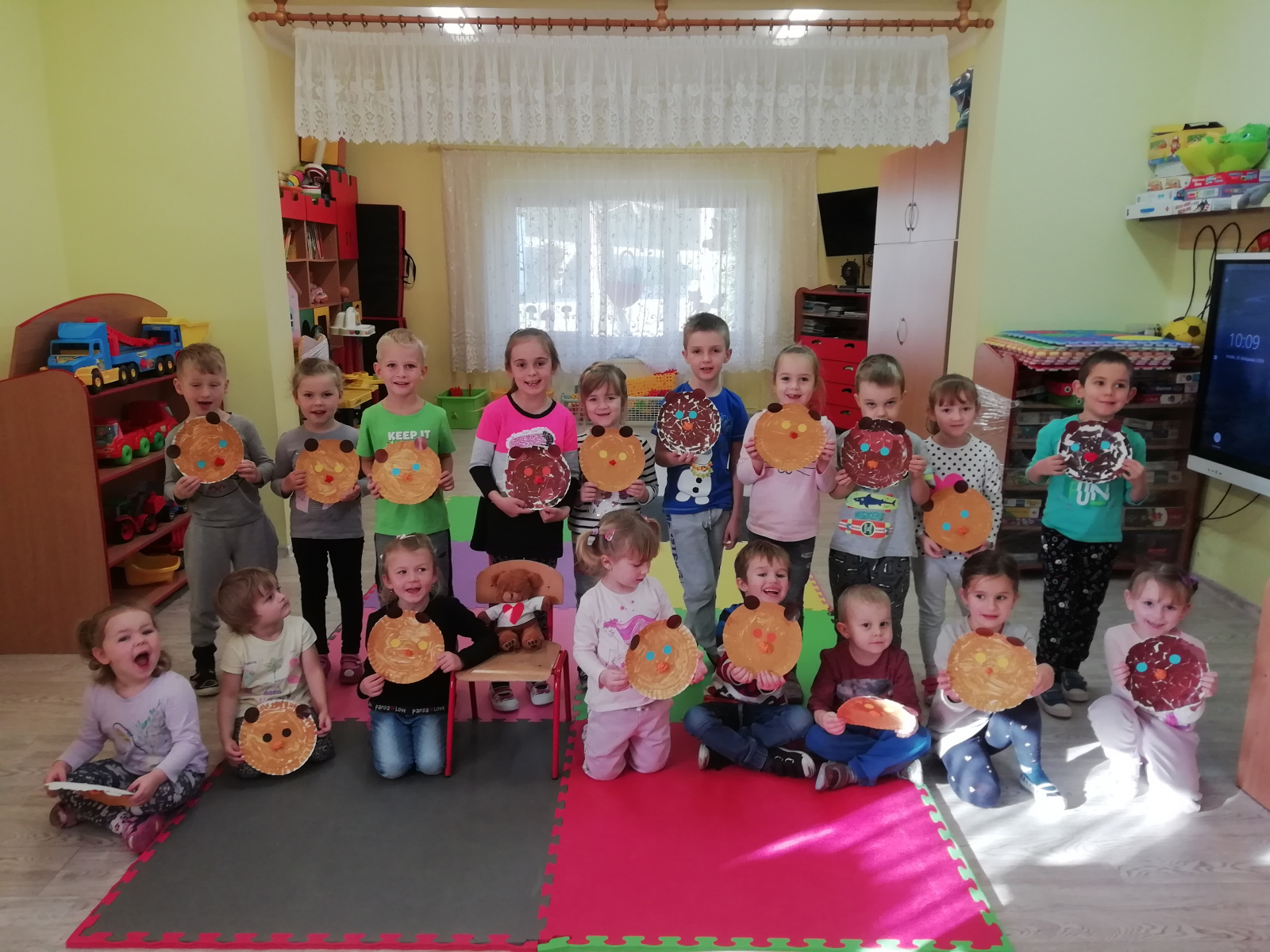 Dzieci, po zapoznaniu się z historią powstania Pluszowego Misia oraz przypomnieniu bajek, w których główną rolę odgrywa miś, wykonały pracę plastyczną – „Buźkę Misia”.