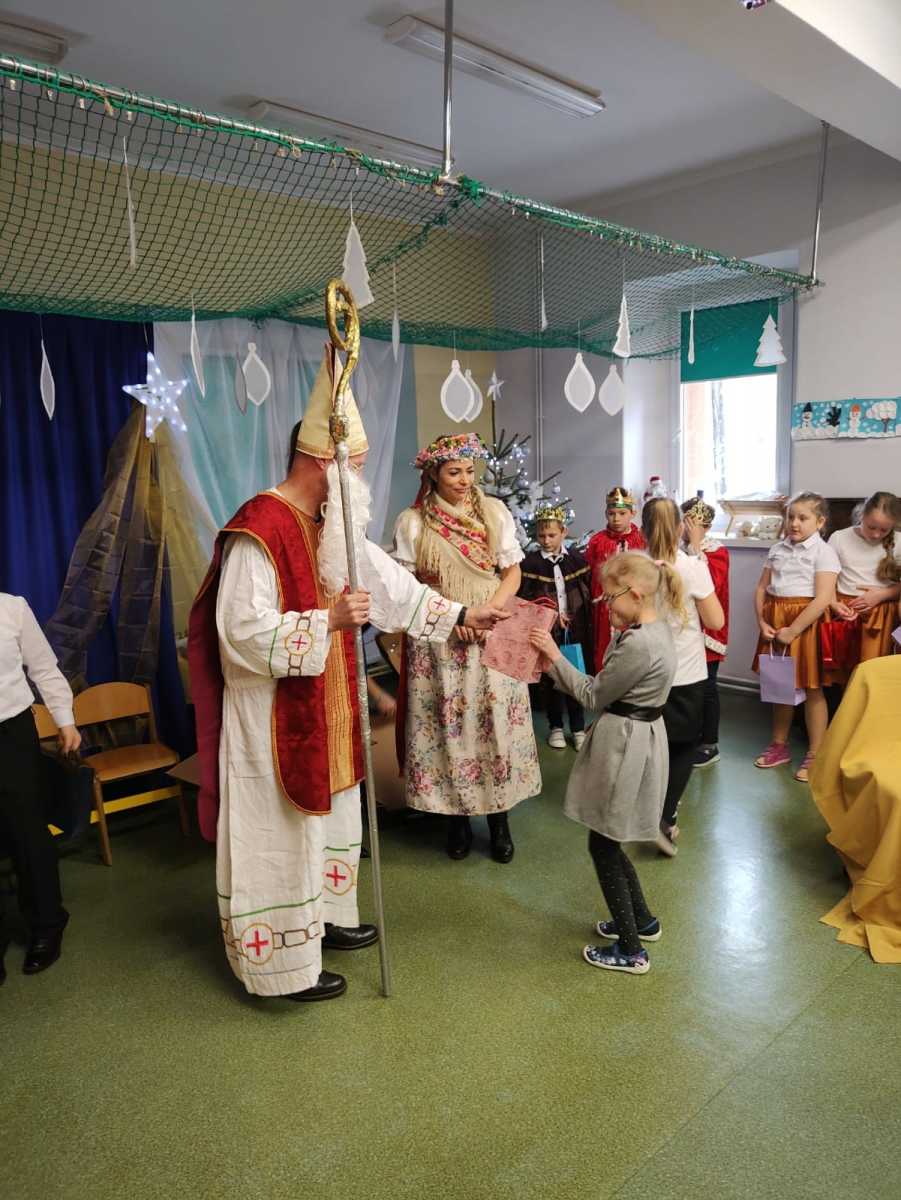 zaprezentowali tradycyjne polskie jasełka. Na zakończenie uroczystości zawitał do nas Święty