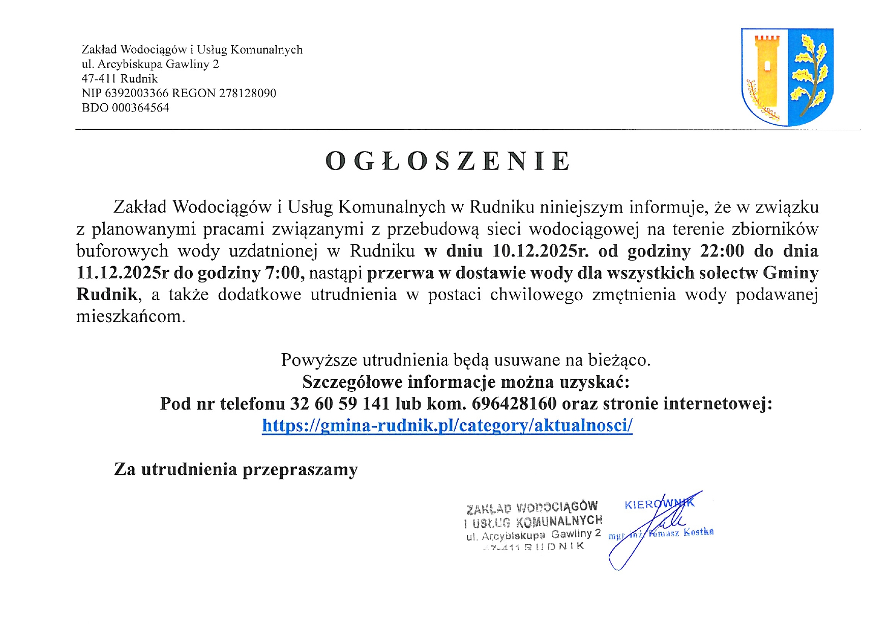 Rudnik, dnia 24.11.2025 r.